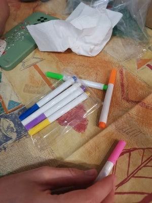 Absolutely! The set includes seven colorful, erasable pens perfect for endless creativity without the mess.